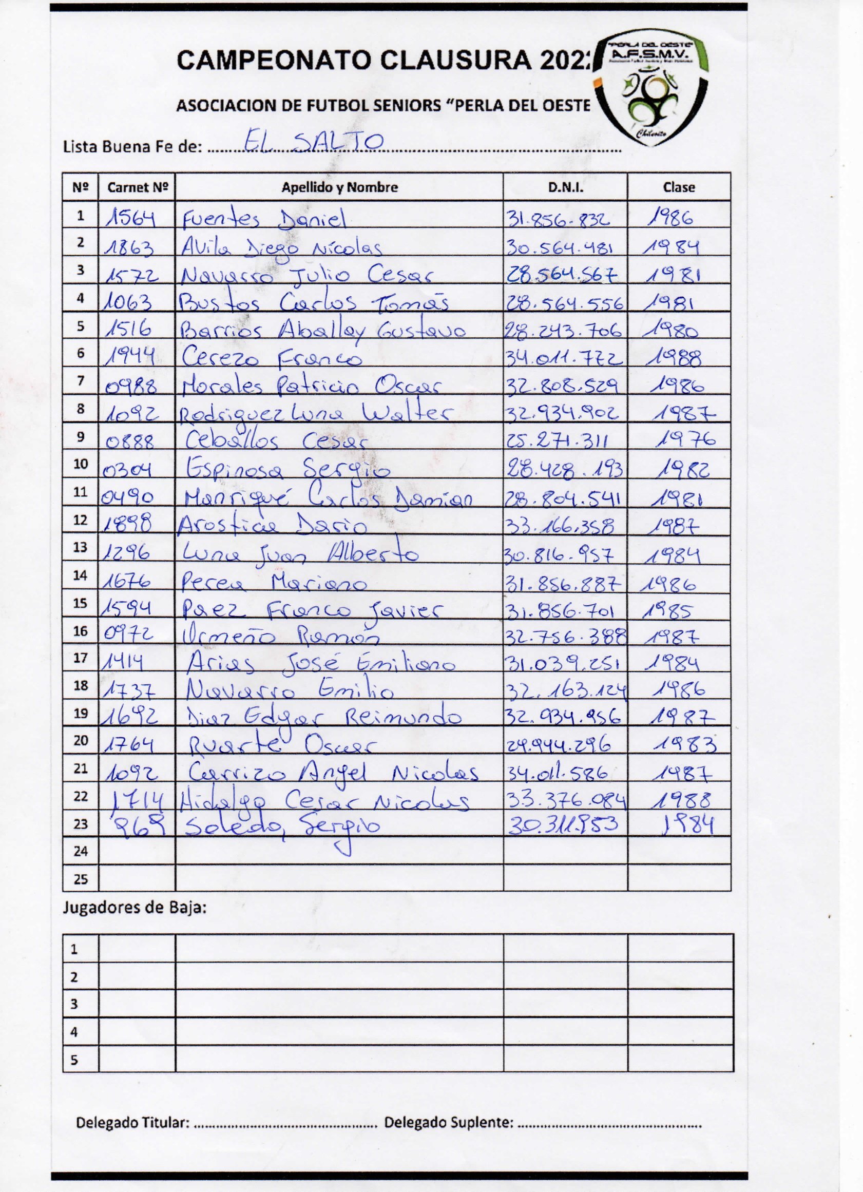 Listas de buena fe, División C
